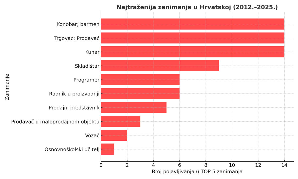 Godinama su najtraženiji radnici u Hrvatskoj konobari, trgovci, kuhari, programeri i prodajni predstavnici.