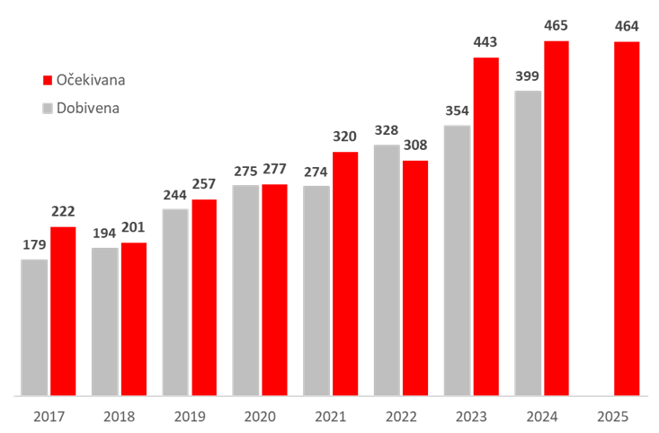 Zanimljivo je da su radnici nekad puno preciznije pogađali iznose koje će dobiti od poslodavca. Prije uvođenja eura, predviđanja zaposlenih bila su gotovo “u cent”, a odstupanja minimalna. No s prelaskom na novu valutu pojavio se veći jaz između želja i stvarnosti. Iako su naša očekivanja tradicionalno nešto viša od uplaćenih iznosa, tek je 2023. došlo do osjetnijeg precjenjivanja božićnica, kstoga je dojam da se zaposlenici još privikavaju na iznose u eurima.