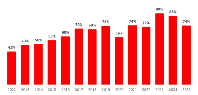 Međutim, ovogodišnja očekivanja radnika nešto su umjerenija nego prethodnih godina. Naime, tri četvrtine zaposlenih u Hrvatskoj (74%) očekuje božićnicu, što je osjetan pad u odnosu na lanjskih 86%.