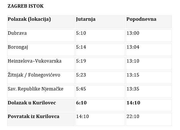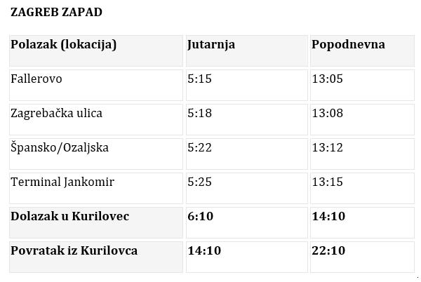 Organizirani prijevoz – Zagreb → Kurilovec (LDC Vukovina)